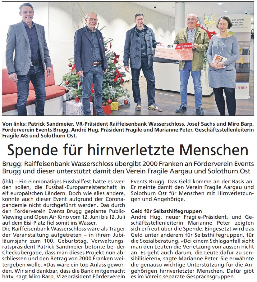 - 01.2021 Regional Brugg: Spende Raiffeisen / Förderverein Events Brugg
