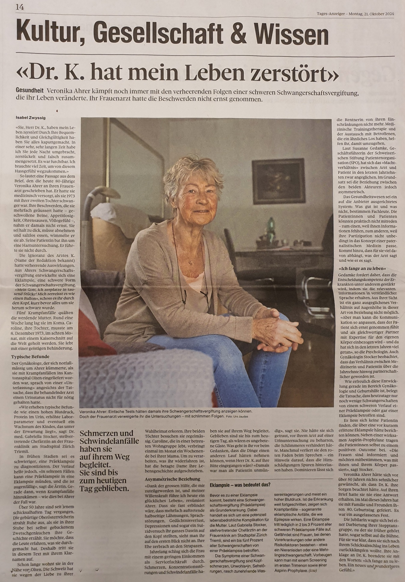 - 10.2024 Tagesanzeiger: Dr. K. hat mein Leben zerstört
