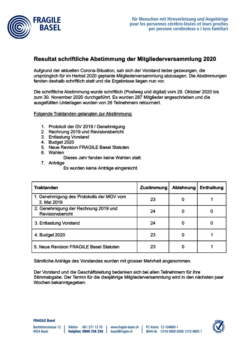 Hier erhalten Sie einen Überblick über die Resultate der Abstimmung MGV 2020 (Protokoll)