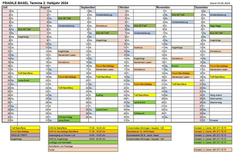 Hier erhalten Sie einen Überblick über die Veranstaltungen und Termine von FRAGILE Basel in der 2. Jahreshälfte 2024