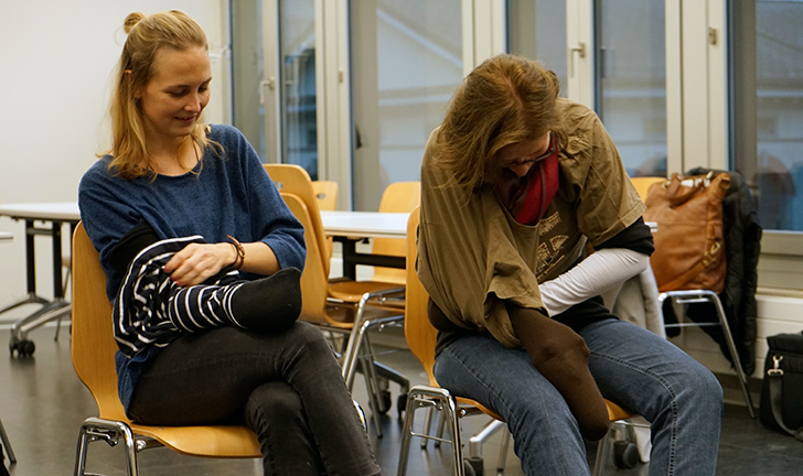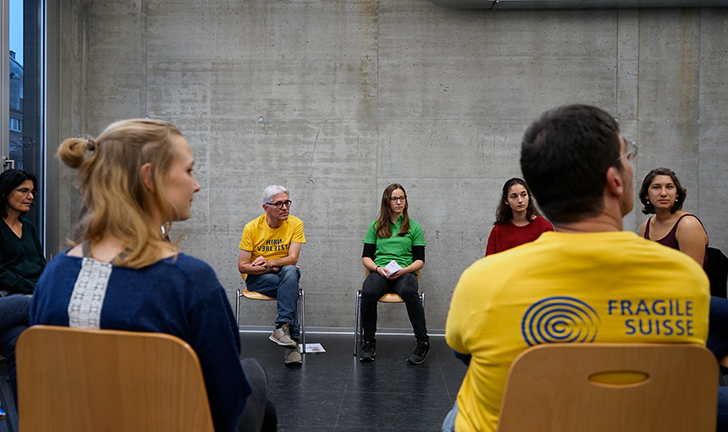 Jeder Posten wird von einer Fachperson und einer betroffenen Person geleitet. Während die Moderatorin theoretische Inputs gibt, ist die betroffene Person Expertin aus Erfahrung und erzählt von ihren Erlebnissen. Dazu kommen verschiedene Aktivitäten, die den Teilnehmenden das jeweilige Defizit näherbringen.