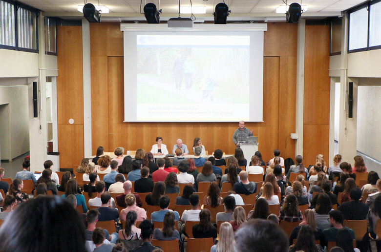 Jeudi 9 mai 2019 – Jean Marzon, Josiane Parisod et Céline Van Till, de FRAGILE Vaud et FRAGILE Genève, ont témoigné devant les étudiants de dernière année à la Haute École de Santé Vaud.
