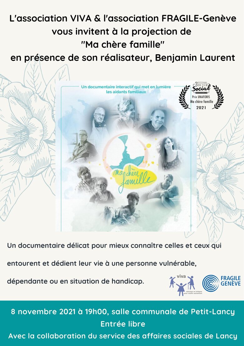 En collaboration avec l'association VIVA, FRAGILE Genève vous convie à la projection du documentaire "Ma chère famille", le 8 novembre prochain. Le réalisateur, Benjamin Laurent, nous fera l'honneur de sa présence.