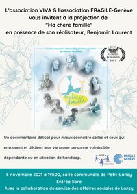 En collaboration avec l'association VIVA, FRAGILE Genève vous convie à la projection du documentaire "Ma chère famille", le 8 novembre prochain. Le réalisateur, Benjamin Laurent, nous fera l'honneur…