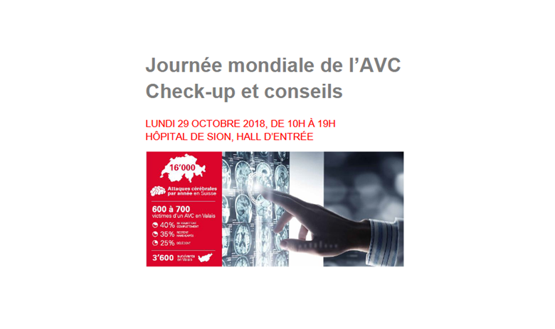 Lundi 29 octobre, FRAGILE Valais sera présente à la journée mondiale de l'AVC à l'Hôpital du Valais à Sion.