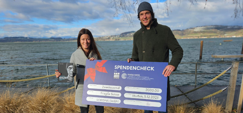 Am Dienstag, 5. Dezember 2023, überreichte Kevin Lötscher einen Check im Wert von 2'000 Franken an FRAGILE Suisse.