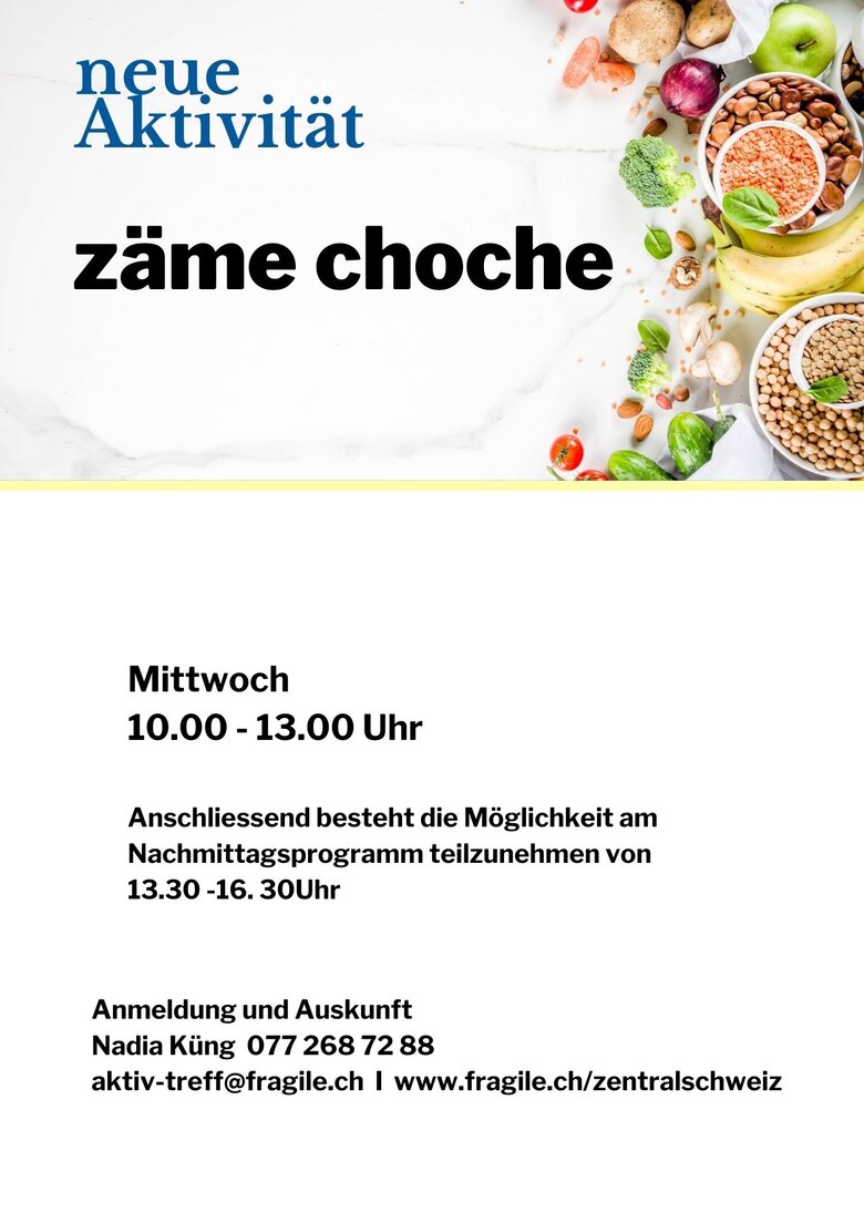 Auskunft und Anmeldung direkt im Aktiv-Treff 077 268 72 88 oder aktiv-treff@fragile.ch.