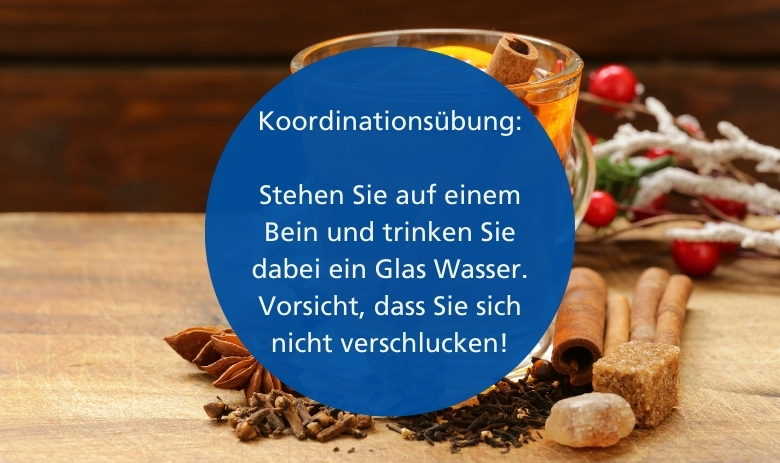 Sicherheit geht vor! Achten Sie darauf, dass Sie sich wenn nötig abstützen können. Alternativ können Sie zum Beispiel im Sitzen eines oder beide Beine nach vorne ausstrecken.