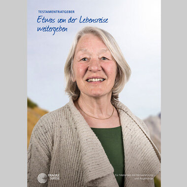 FRAGILE Suisse hat zum Thema Nachlassregelung eine Publikation herausgegeben. Unser kostenlos erhältlicher Testament-Ratgeber «Etwas von der Lebensreise weitergeben» gibt einen guten Überblick über das Erbrecht in der Schweiz sowie praktische Unterstützung und Beispiele zum Regeln Ihres Nachlasses. Mithilfe des Ratgebers können Sie anhand einer Anleitung Ihr eigenes Testament verfassen und verschiedene Optionen zur Erbeinsetzung visualisieren.