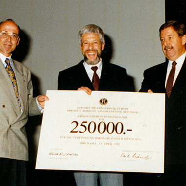 Am 23. Juni 1990 wird die Schweizerische Vereinigung für hirnverletzte Menschen (SVHM) im Inselspital Bern gegründet. Rechtlich ist dies die gleiche Organisation wie die heutige Fragile Suisse, sie wurde aber später umbenannt. Der Neurologe Peter Zangger (Mitte) ist erster Präsident (und heutiger Ehrenpräsident). Zur Gründung erhält die SVHM 250'000 Franken Startkapital anlässlich des Jubiläums von Kiwanis Schweiz. Obwohl es damals schon regional aktive Selbsthilfegruppen gibt, die miteinbezogen werden, existiert noch keine Regionalvereinigung. In Winterthur mietet die SVHM in einem Haus, wo damals die Sulzer Krankenkasse ihren Sitz hat, eine 2-Zimmer-Wohnung als erstes Geschäftslokal.