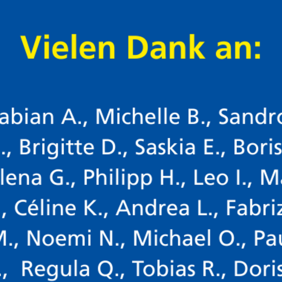Familie B., Wendy G., Familie H., Nicole H., Markus S., Marion L., Marianne P., René Z., Andrea W., Ute R., Jennifer J., Rita L., Corinne P., Beat E., Patricia B., Vito P., Dani B., Tania F., Mirjam P.